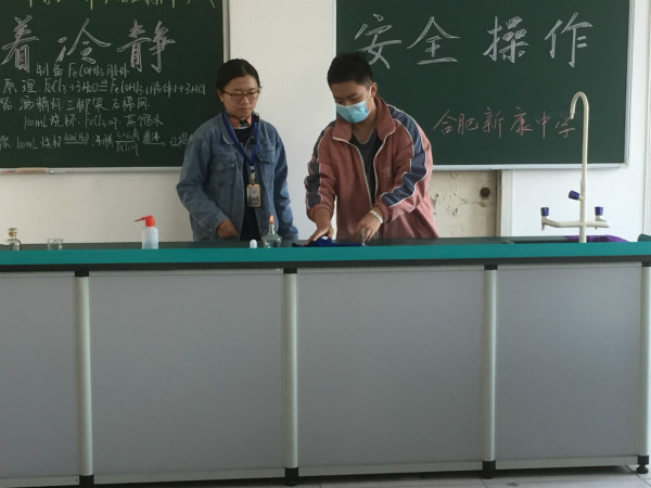 本次应急演练主要采取情景虚设、突发事故紧急实战安全处理,分别模拟了四个案例的应急处置,包括:酒精灯酒精洒落失火、学生中毒晕倒、化学试剂溅到眼睛里、化学实验室火灾不可控的应急处置。此次演练针对不同的突发事件,按照不同的应急处置方案,徐老师亲自示范、指导学生及时安全处理突发事故。