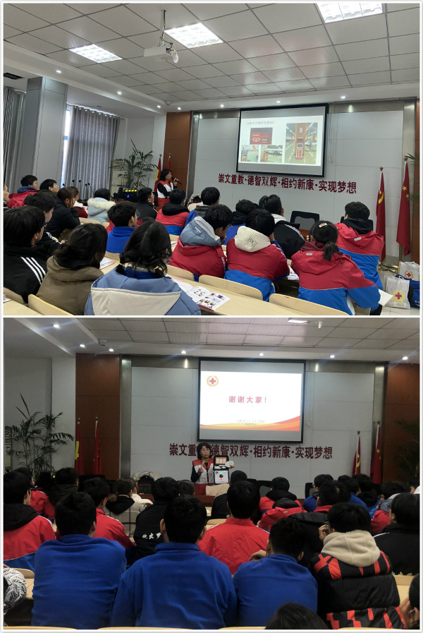 为培养师生的安全意识,让师生初步了解和掌握应急救护知识和技能,提高自救互救技能,2020年12月15日,合肥新康中学举办了应急救护培训专题讲座。本次讲座邀请了合肥市红十字会应急救护培训中心的罗平老师,为我校师生开展了应急救护培训专题讲座。校办杨薇老师、后勤保障部副主任卫志荣、初高中生活老师,各班班长和体育委员代表参加了此次培训。