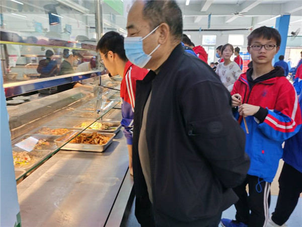 桑局长一行,还走进学生食堂,观察食堂菜品种类、卫生状况和服务质量,询问学生饭菜是否可口?价格是否合理?同时,在我校教师餐厅体验就餐,与部分老师进行亲切交流。