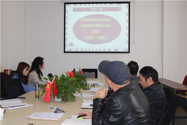 王俊校长要求行政班子成员应领会市委虞爱华书记和市教育局相关领导讲话精神,必须落实“十不得”禁令,真正做好“抓规范”、“抓排查”、“抓机制”、“抓考核”和“抓问责”等相关工作。并对近期初中部“跳绳比赛”、高中部“激情跑操”等活动的开展给予肯定。要求学部领导们要从每一位学生身心健康出发,提高课堂效率,做到“减负增效”,实现立德树人目标。