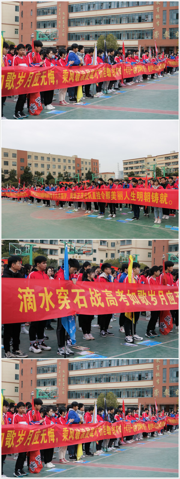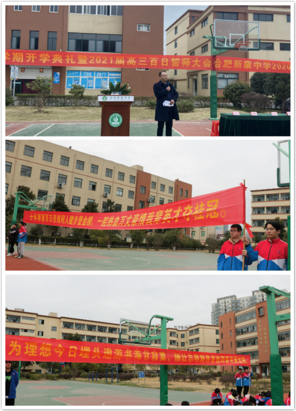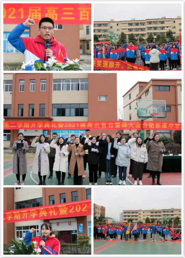 激情成就梦想,拼搏书写华章,冲刺高考的号角已经吹响,愿新康中学的高三学子们坚定目标,努力奋斗,勇于拼搏,百日卧薪须尝胆,六月金榜必题名。至此,合肥新康中学2020-2021学年度第二学期开学典礼暨百日誓师大会到此结束。