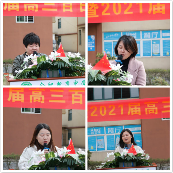 学生们优异成绩的取得离不开老师谆谆教导,教师代表杨静静老师和班主任代表程思老师进行了发言,她们代表全体高三教师做出了重要承诺,同时为全体高三学子送上了美好祝福和良好祝愿。