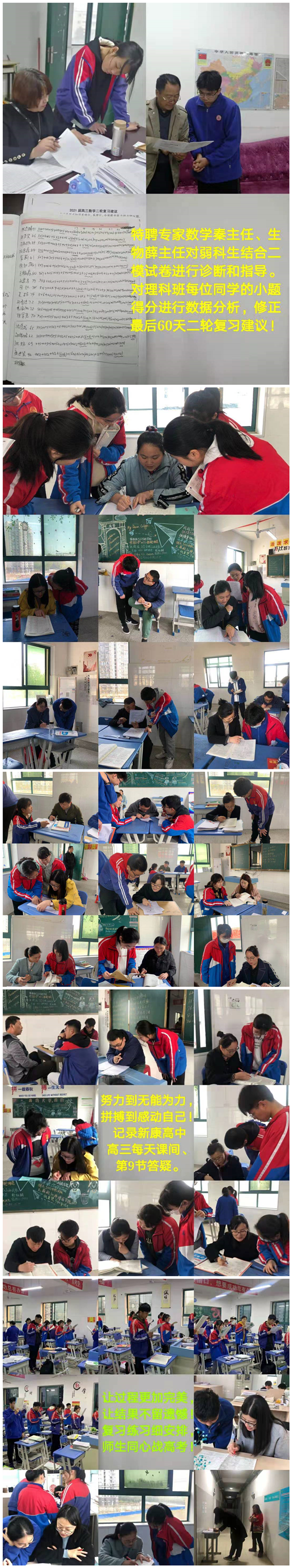 段校长结合专家意见,对下一阶段的复习迎考工作、临界生培养工作、后期高三学生管理、学生备考心理等方面提出了具体的要求和指导性意见。段校长强调:教育教学质量的提高,重点在课堂,研究适合新康校情、学情的高效课堂教学模式、备考模式,提高课堂效果是关键,全体高三教师必须争分夺秒、提升效率,与时间赛跑,全力以赴。