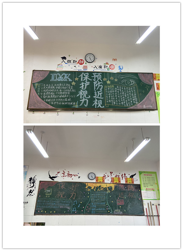3月25日,在德育处的组织下,高一年级各班级利用课余时间策划了主题黑板报。黑板报上多姿多彩,既有生动形象的绘画,也有情真意切的文章,对预防近视起到了有效的宣传作用。
