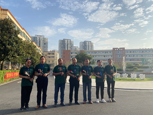 早晨,以段方校长为首的校领导精神抖擞地站在校门口,给每一位老师献上鲜花,送上热情的问候,用饱满的热情,灿烂的笑容迎接每一位老师进校。
