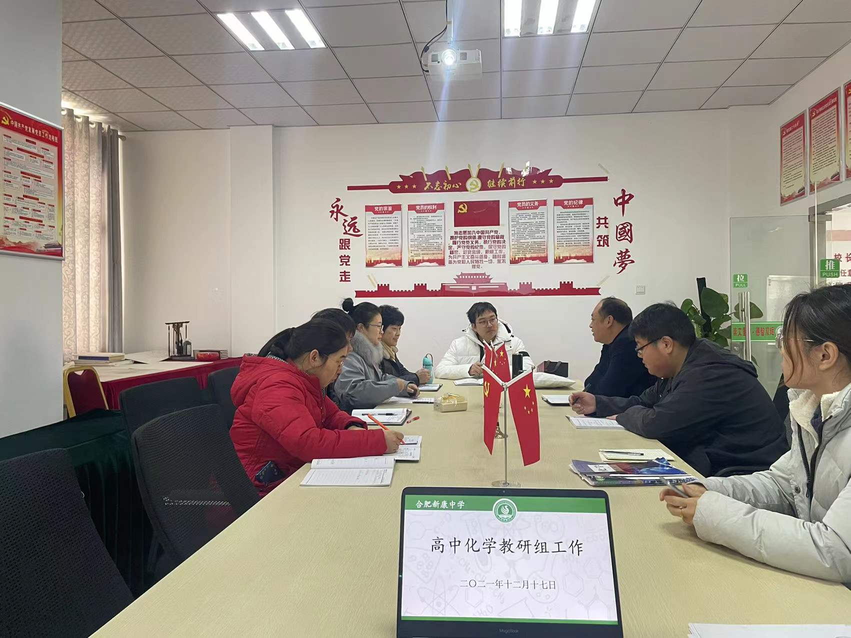 李美丽老师代表合肥新康中学高中化学组汇报了本学期的化学组工作,鹿钰锋主任对我校化学组工作进行指导。抱团取暖,一个人走的快,一群人走的远,相信在合肥市包河区化学教研员鹿钰锋主任、合肥市戈益超名师工作室和包河区王磊高中化学名师工作室的引领下,我校高中部化学组全体教师的教学水平一定会不断提高。