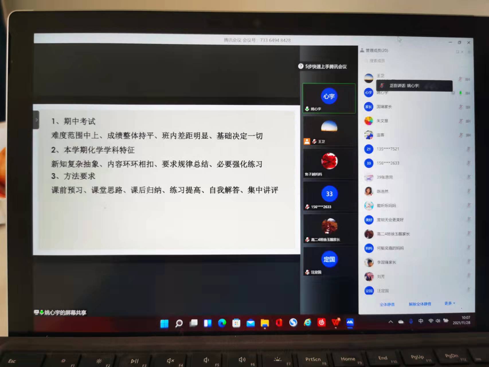 为更好地召开此次会议,会前,高二年级李超群主任组织召开班主任工作会议,对线上家长会的准备工作做了详细安排。本次线上家长会议程分为两项:年级家长会与班级家长会。会后,各班分别预定腾讯会议号,给家长发送年级和班级会议邀请函及视频会议的注意事项,各班班主任、任课老师、家长根据线上会议要求,提前做好参会的准备。