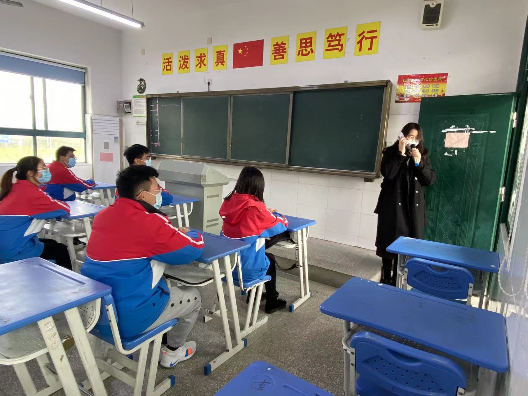 各班班主任给学生分发检测二维码,组织学生更换N95口罩、间隔一米有序前往核酸检测点。