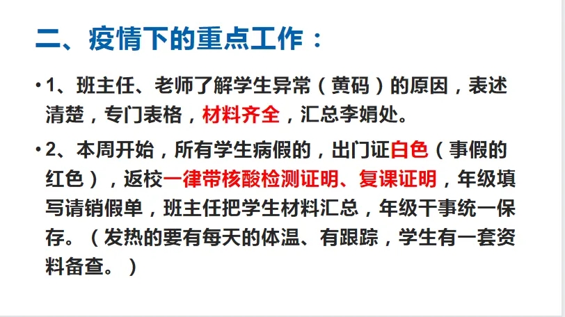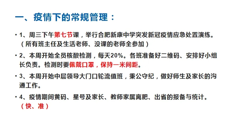 段校再次提出此次演练的目的,提高重视,并对校园常规疫情管理提出要求。