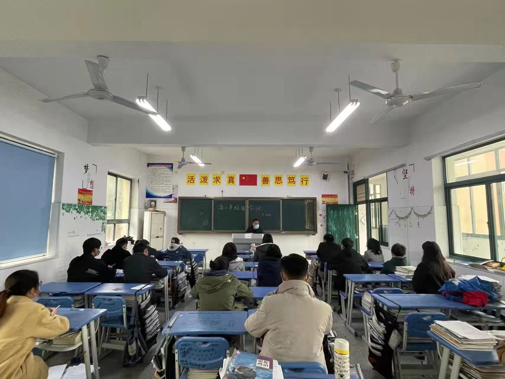 为有效防控疫情,确保全校师生人身和财产安全,保证正常的教育教学秩序,高二年级召开年级教师会议,落实好疫情防控相关要求。