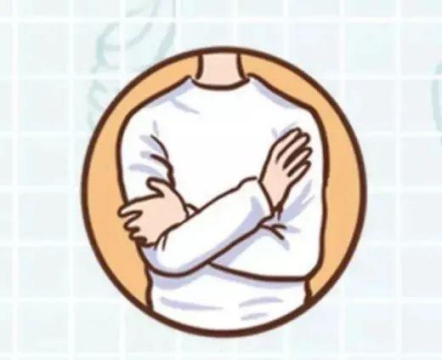 请同学们双臂交叉于胸前,右手拍打自己的左肩,左手拍打自己的右肩。刚开始拍的速度可以慢一些,一直拍到自己觉得放松为止。然后双手拍打自己的大腿,同样开始拍的时候速度可以慢一些。