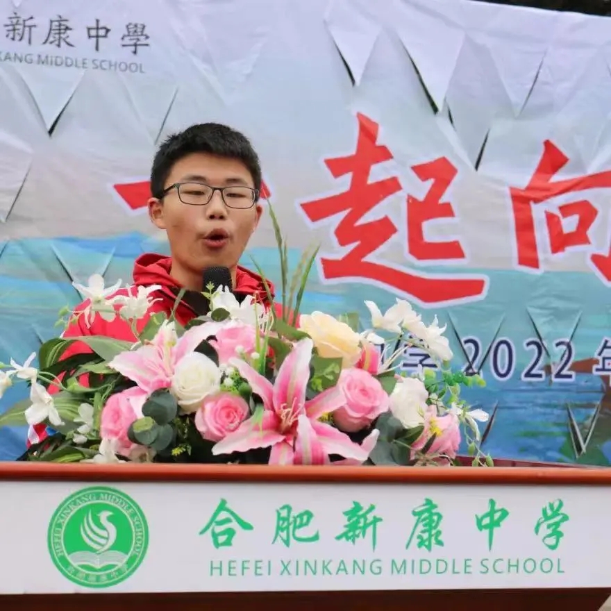 接着,初中部学生代表汪鑫锐同学讲话,分享新学期新期望。