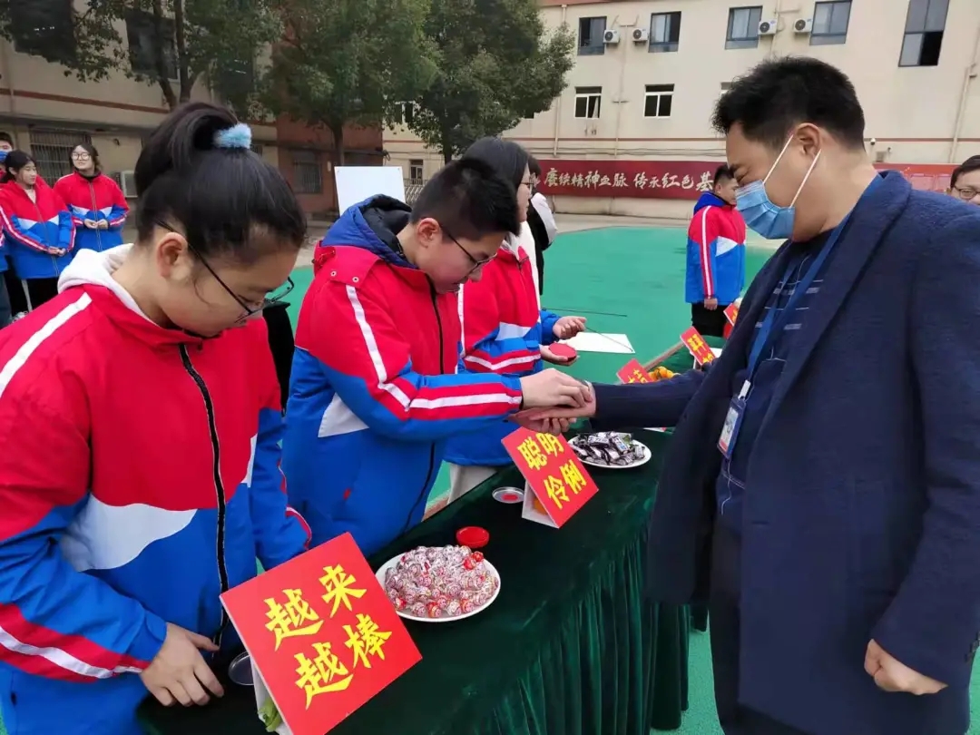 俗话说:“十年树木,百年树人。”老师和学生一起种下了希望的种子!而这项活动称为“入学礼”。可以说这项活动在我校历史是前所未有的,体现了我校对教育的不断创新。活动中,高中部优秀教师与学生一起上台,在“希望树”背景音乐之下,老师们将自己的手印按在希望树上,如同种下了希望树,可以看出老师对学生未来充满了期望,同时展现了学生自己对未来的憧憬。
