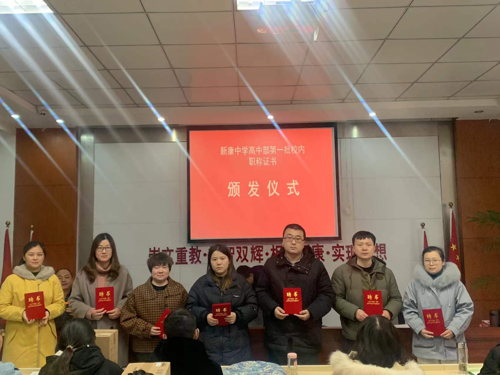 为了表彰先进,特授予余丽、刘静、程思、樊浩、杨静静、李小亮、李美丽、李超群八位老师为新康中学“二级一星”教师。
