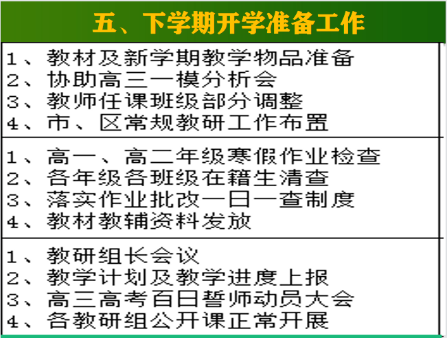 从寒假到开学,工作一一列举,张主任于细微出见力量。