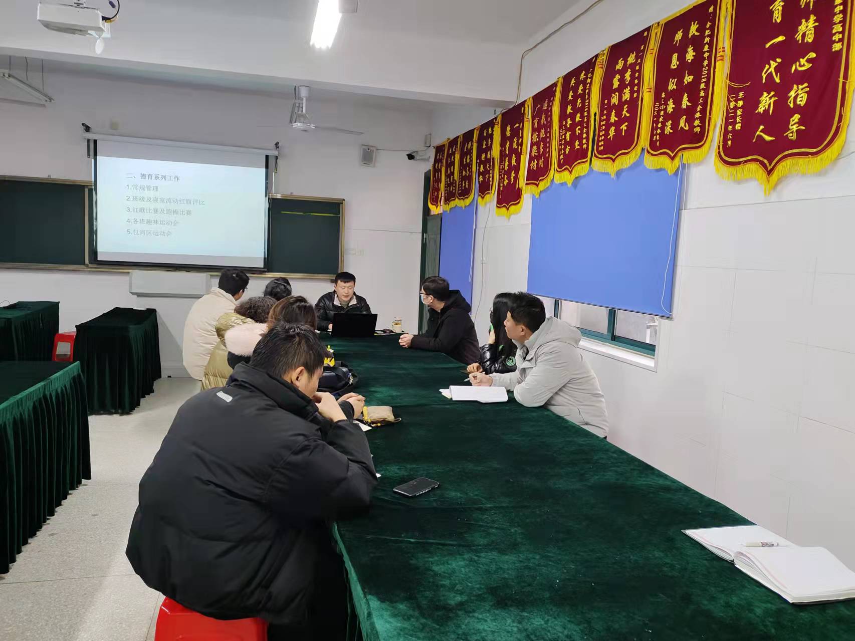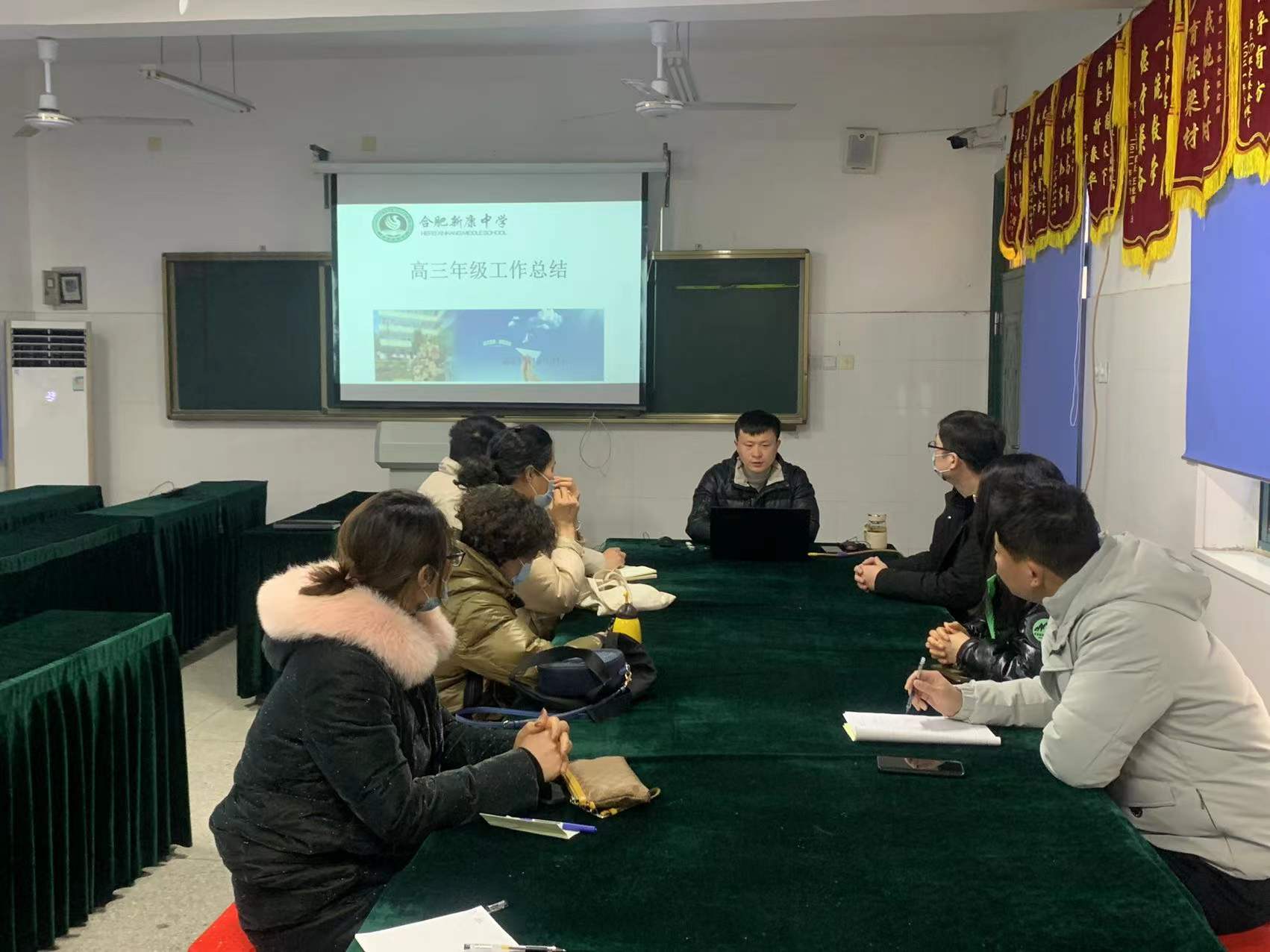 高一年级张主任召开高一年级家委会会议,会上总结了2021年学期工作,让家长放心,给老师信心,用一颗爱心去完成夜空中最亮的“星”。张主任指出,高一是基础,高一更是关键,只有家校共育,才会有学生的美好未来。