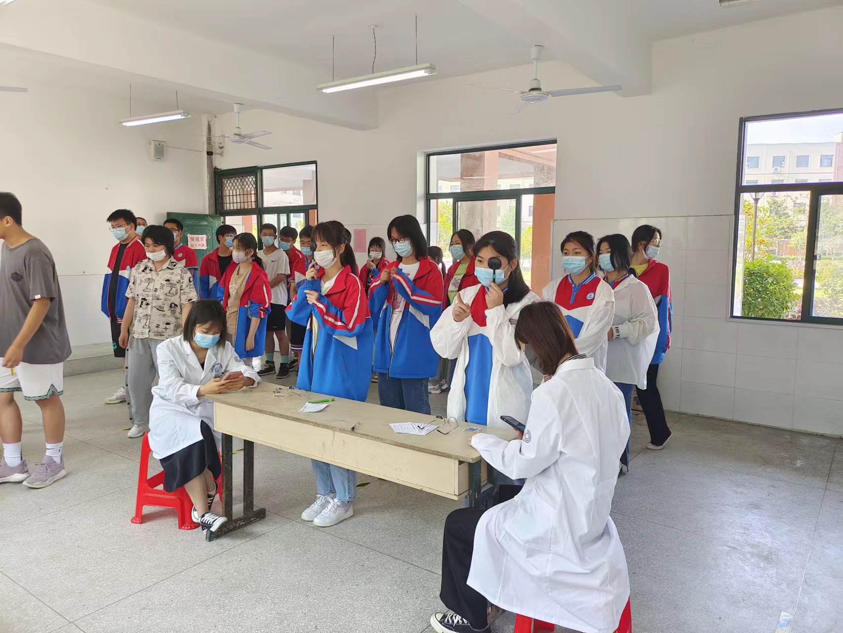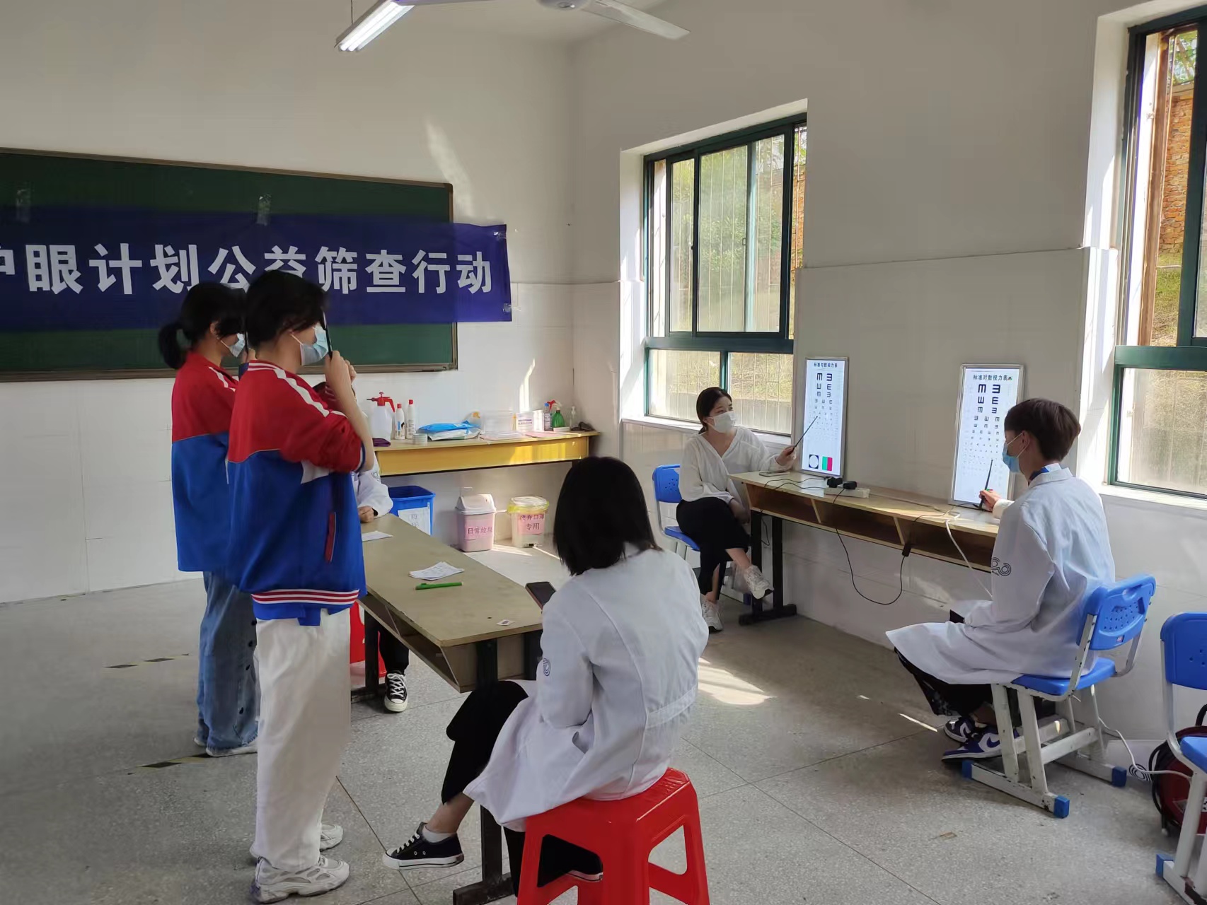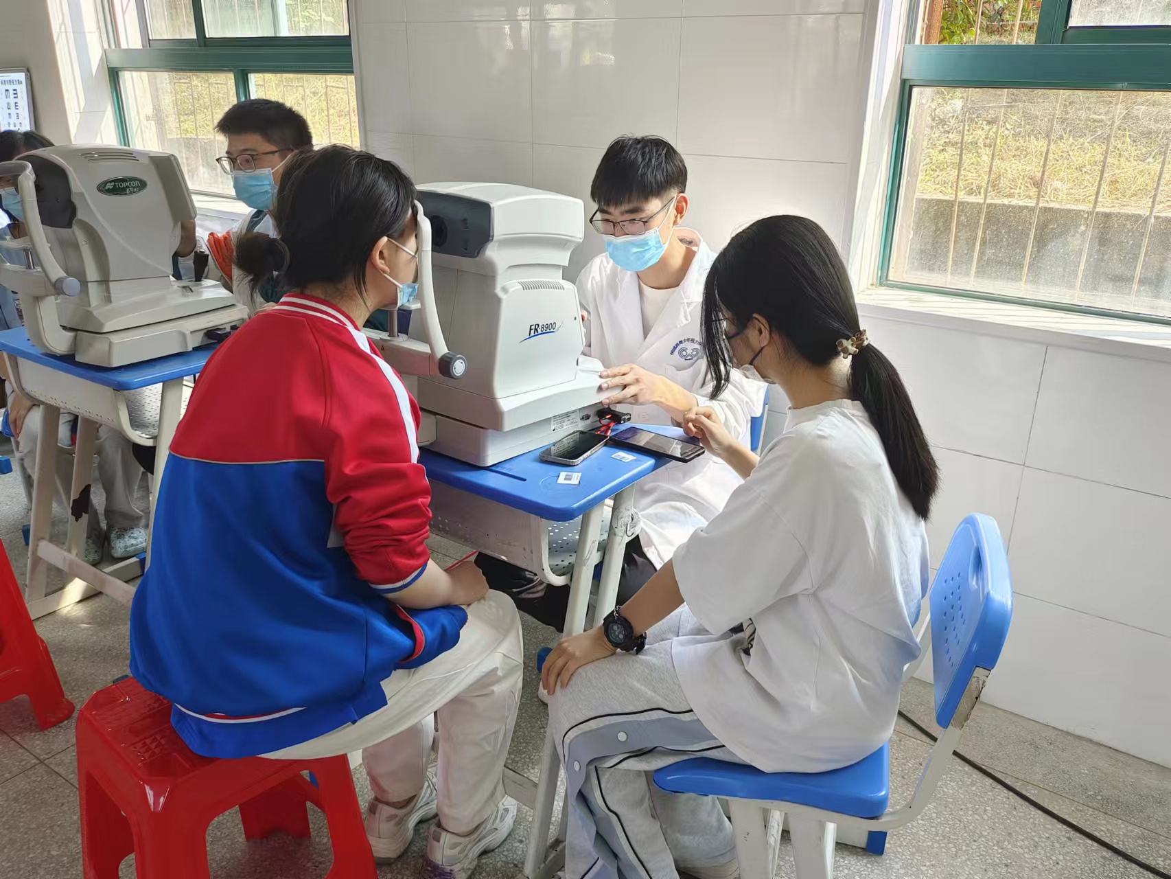 学生先是接受标准视力表检测,之后进行仪器检测,医生根据测试结果进行填表,并且将视力结果保存在学生的视力档案中。