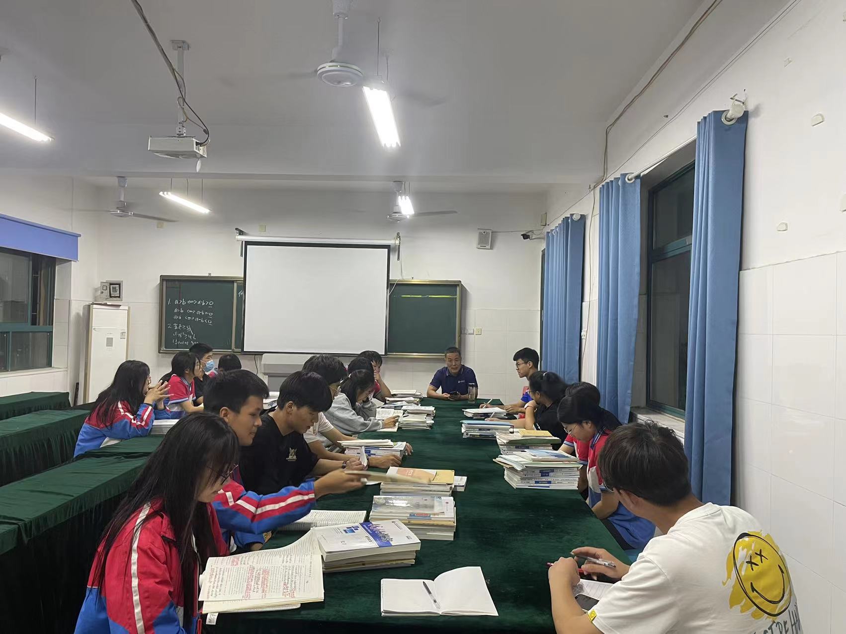 座谈会结束,李主任组织年级干事黄琪深、黄燕老师对学生作业进行检查。从检查中看到,老师们能严格按照一轮复习要求,布置的作业量适中,形式多样;作业全批全改,批改订正及时且有针对性;批阅及时且有等级、有日期。学生作业整洁、书写规范,部分优秀作业干净美观,给人赏心悦目的感觉。