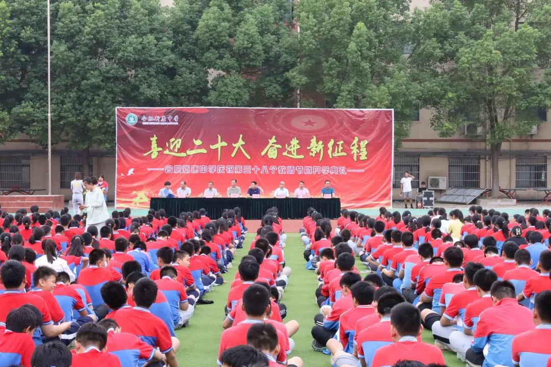 九月,充满着新学期的希望。我们的学生踏上知识的沃土,尽情汲取;踏上学问的方舟,尽情驰骋;打开智慧的天线,尽情去探索学习的奥秘。“喜迎二十大,奋进新征程——合肥新康中学庆祝第三十八个教师节暨开学典礼”于2022年9月9日上午隆重举行。