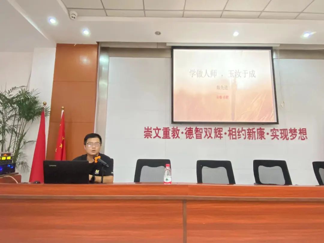 紧接着全体教师聆听全国优秀教师,安徽省领军人才,合肥市优秀班主任,合肥青年五四奖章获得者汪小宝老师的《如何提升教师的教育力》.