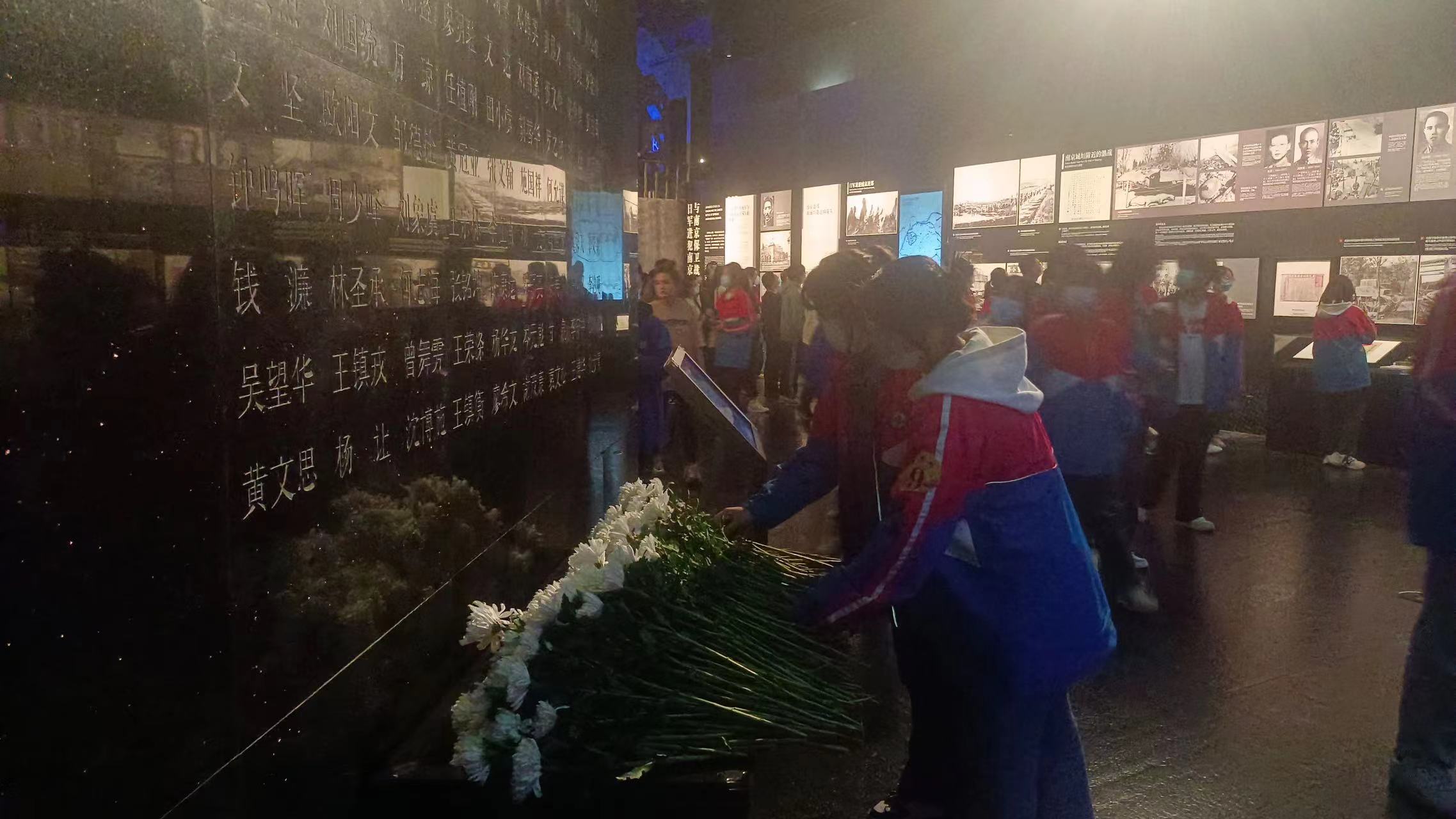 巍巍青山埋忠骨,朵朵白花奠英魂。参观完侵华日军南京大屠杀遇难同胞纪念馆,同学们纷纷献上纯洁的白菊,悼念在大屠杀中无辜遭难的同胞。南京大屠杀的历史警示我们,要牢记历史、不忘过去,珍爱和平、开创未来。遇难者同胞们惨遭战争磨难的悲痛经历,也使同学们更加懂得了和平的珍贵,明确了作为新时代青少年身上的责任。