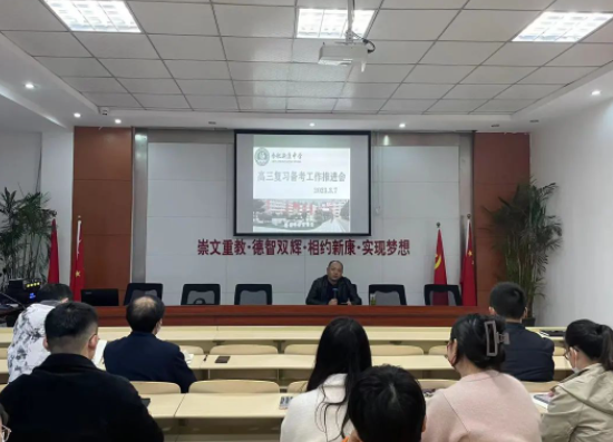为了进一步推进高三复习备考工作,找准复习的着力点和突破口,提高复习效率,提升教学质量,精准分析学情、教情,把握高考发展态势。2023年3月7日下午在行政楼会议室召开高三年级复习备考工作推进会。