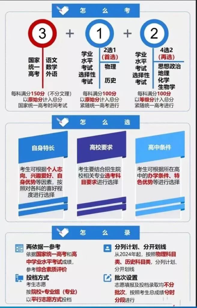 考生总成绩由全国统一高考的语文、数学、外语3个科目成绩和考生选择的3科普通高中学业水平选择性考试科目成绩组成,满分为750分。即通常所说的“3+1+2”模式。