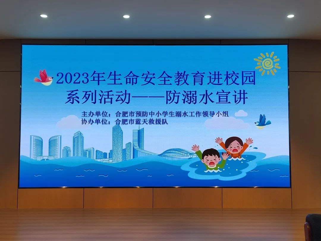 夏天是青少年溺水事故的高发期,暑假将至,为了增强学生防溺水安全意识,掌握预防溺水的知识技能,强化防溺水安全教育,6月21日下午,由合肥市教育局主办、合肥市蓝天救援队协办的“2023年生命安全教育进校园系列活动——防溺水宣讲”走进我校,为学生开设防溺水知识的主题宣讲。