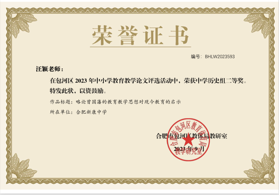 硕果累累承荣誉,砥砺奋进再前行。收获总是带着特有的喜悦,透着耀眼的光芒出现在我们面前。我校高中部师生们积极参加合肥市、包河区各类教育教学比赛,同时也取得了优异的成绩。