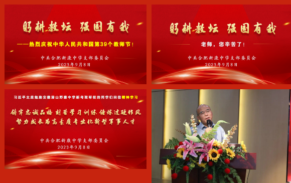 2023年9月10日是我国第39个教师节,也是党的二十大胜利召开后的第一个教师节。人民教师神圣光荣,肩负着传道授业,教书育人的重要使命。在第三十九个教师节到来之际,合肥新康中学向广大教师和教育工作者致以节日问候、表示崇高敬意。