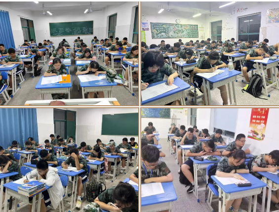 入学报道之时,学校给学生准备了初高中衔接知识点汇总,学生利用暑假时间消化,军训之余,我们组织背默大赛,学生们积极参与,安静答题。