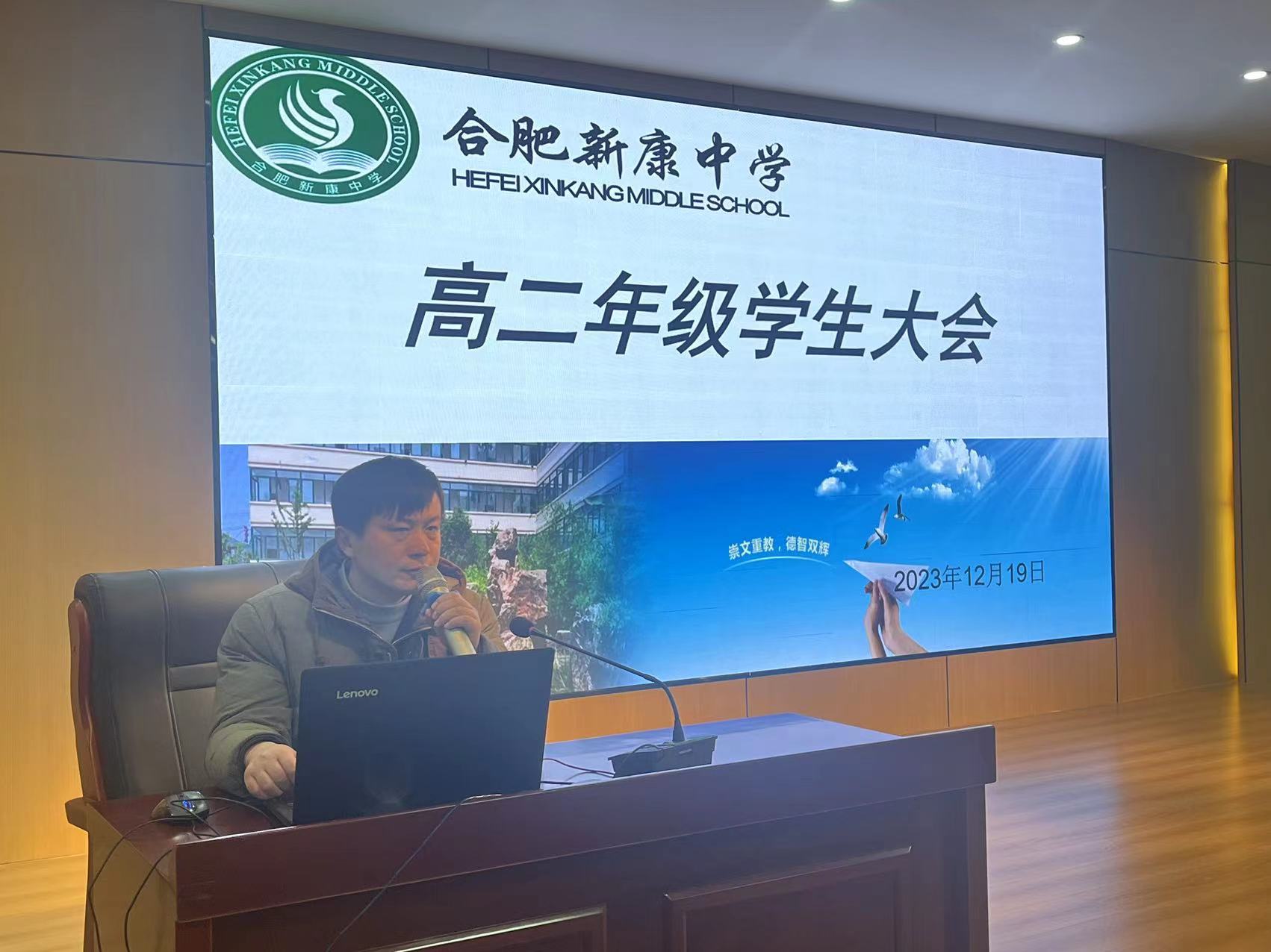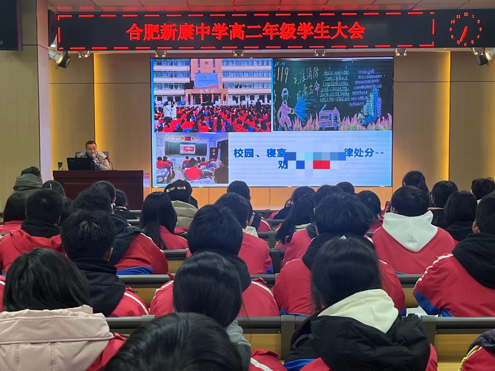 临近期末,为落实安全教育工作,增强学生安全防范意识,全面普及校园安全知识,提高学生安全防范能力,合肥新康中学高二年级于2023年12月19日晚,召开安全教育及日常行为规范管理要求推进会。本次会议由高二年级樊浩主任主持,政教处李超群主任参会。