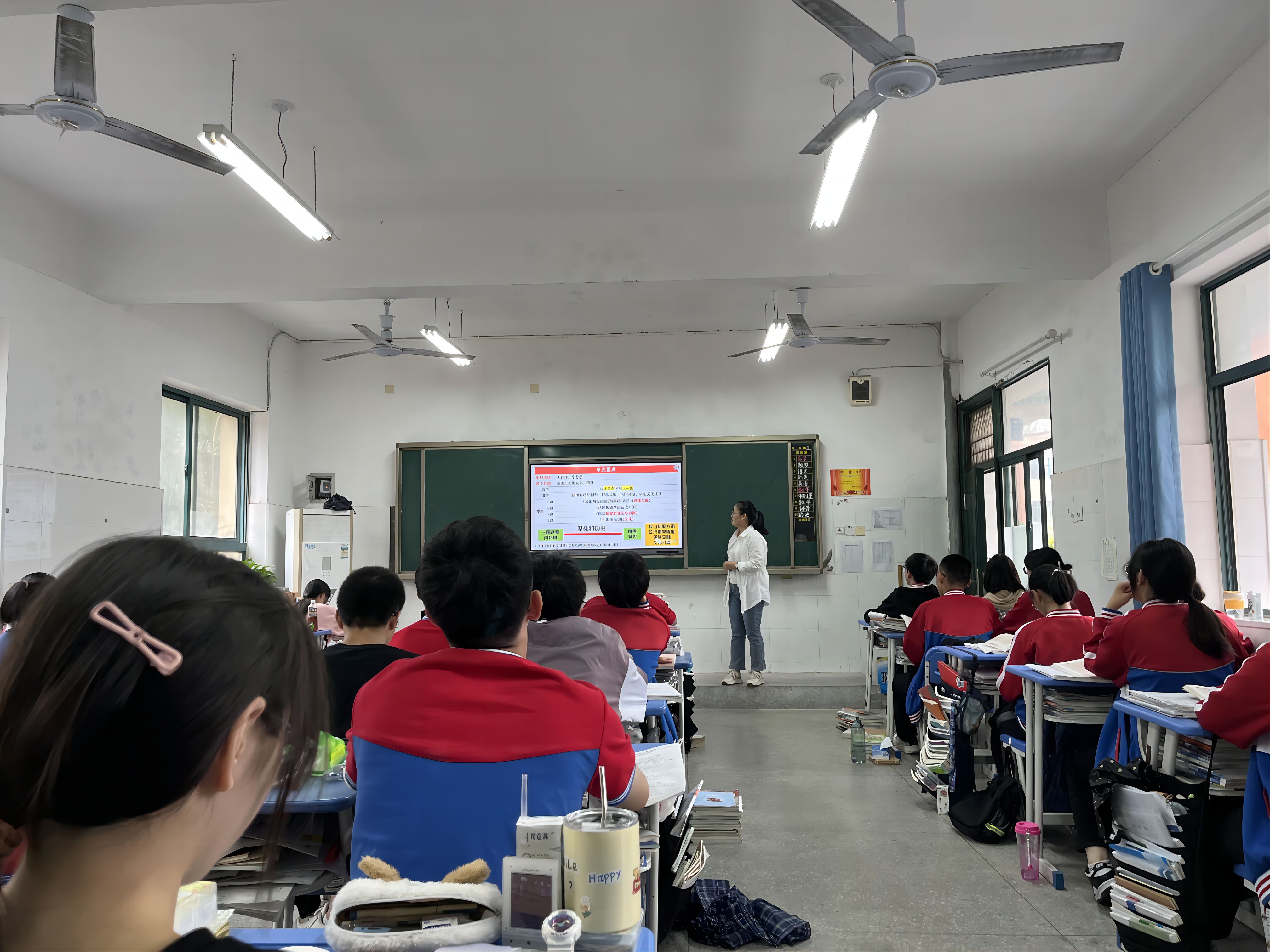 高一政治学科组史佳莉老师的公开课内容为《新民主主义革命的胜利》。史老师从复习上节课的内容入手导入新课,结合导学案明确了重难点,从中国共产党的成立讲述到革命的主心骨再到三大法宝,适时组织学生分组讨论,重点讲述了新民主主义革命的性质与特点,最后推出新民主主义革命的理论成果一一毛泽东思想。本堂公开课容量大,理论性强。史老师做到了教学组织严谨,逻辑清晰;紧密结合导学案,完整地完成了教学内容;难点讲透,重点讲清。
