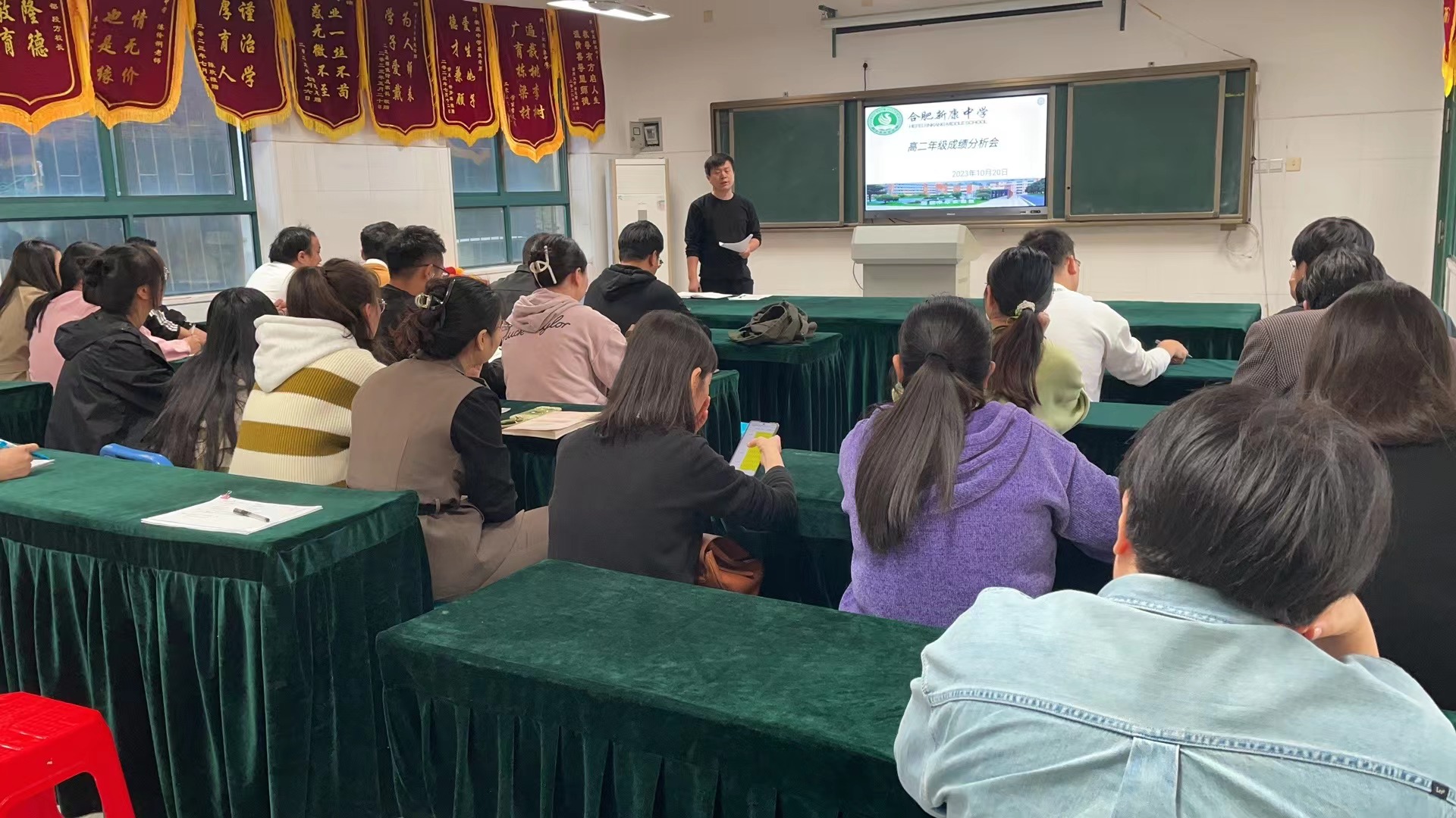 会议开始,李主任和樊主任首先肯定并感谢开学以来老师们的辛勤付出,然后借助详实的数据,对本次月考年级总体成绩、各班学科成绩进行横向和纵向比较,并做出全面而深入的分析。同时表达出对后一阶段教学工作的期许,希望各年级组齐心协力、齐抓共管,心往一处想,劲往一处使,拧成一股绳,共同提升教育教学质量,促进学生大战。