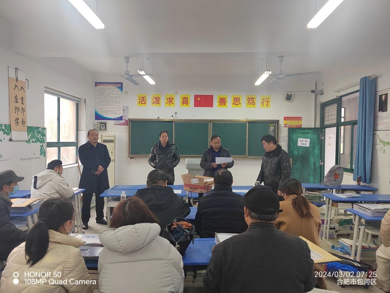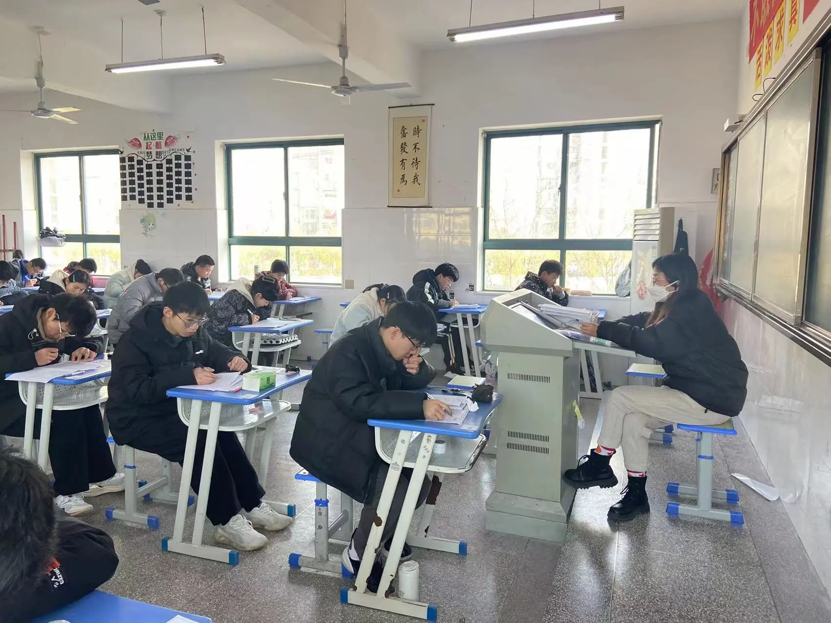 我校为促进教师专业成长、优化课堂教学,特举办师生同场测试。在此专门为教师设立考场,与学生同步时间、使用同一试卷参加考试。无论何时,教师们都将始终陪伴学生,共同应对挑战,携手共创辉煌。