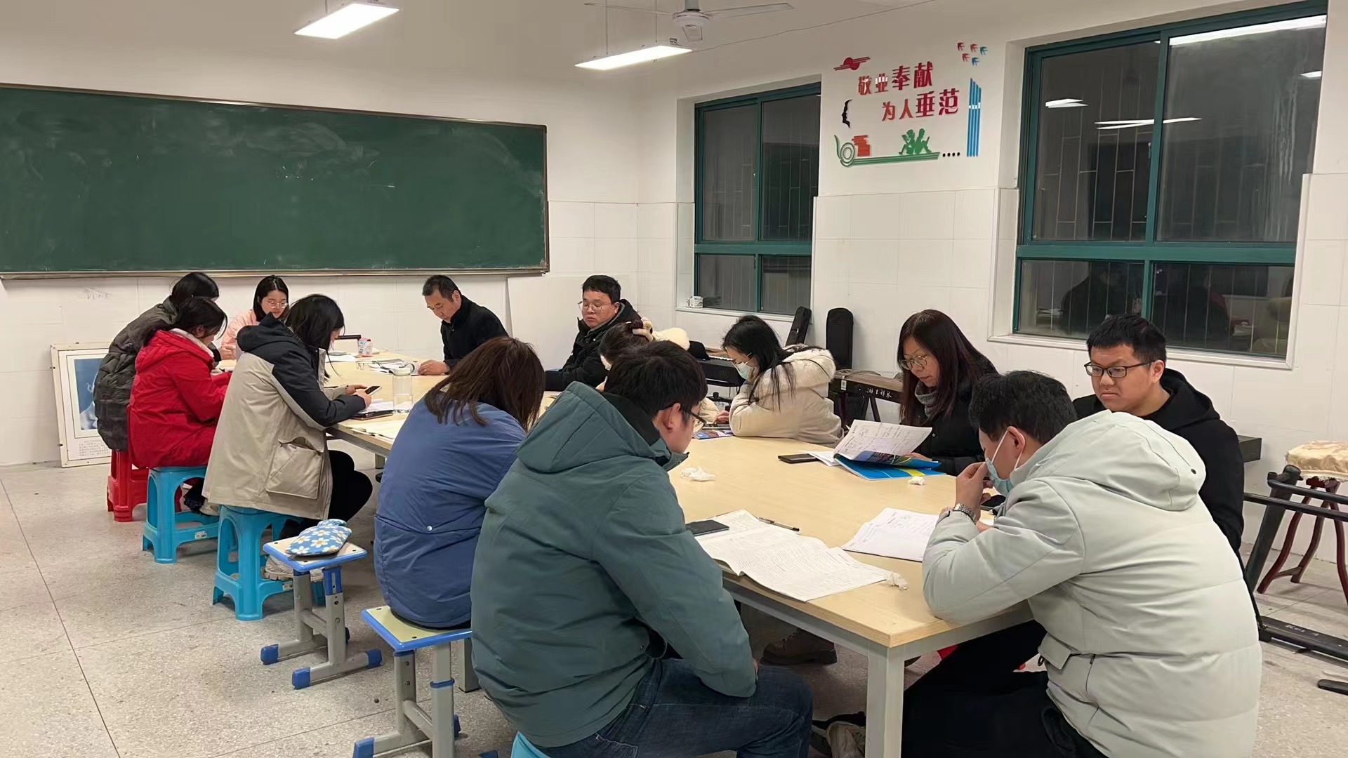 为了提高自身的素质,提高组内英语教师的专业理论知识水平,英语教研组的15位教师一起学习研究《普通高中英语课程标准(2017年版)》,搞清新课程标准与原教学大纲的变化,明确各个年级的英语教学目标、任务以及要求,从宏观上把握各个年级的知识脉络。特别是对于新教材改革,新教材所体现的核心素养,新旧教材在内容编排、整体框架等方面的不同都进行了认真的学习。