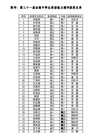 为了调动学生学习英语的积极性,不断提高自己的英语水平。我们积极鼓励学生参加各类英语比赛。本学期,学生参加了"2023年全国中学生英语能力测评大赛"。有9人获得国家奖,30人获得省级奖。其中李婉婷同学获得国家一等奖,全省第四名的好成绩。