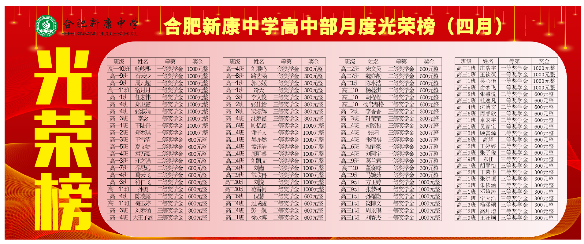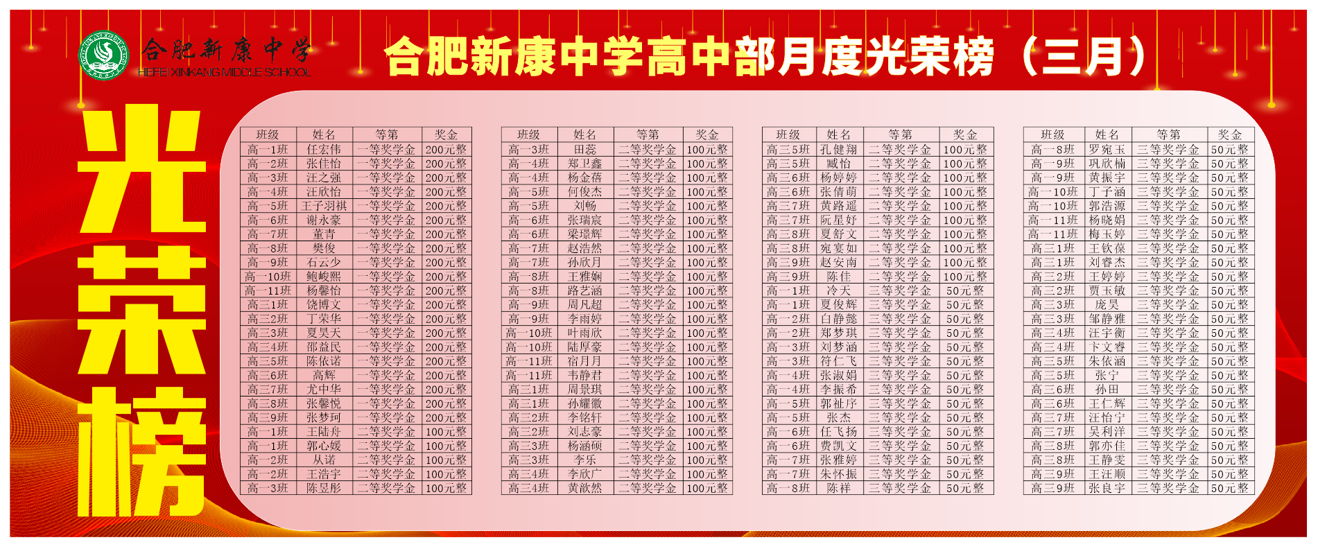 月度奖学金:一等奖获奖学生20人,二等奖获奖学生40人,三等奖获奖学生40人。
