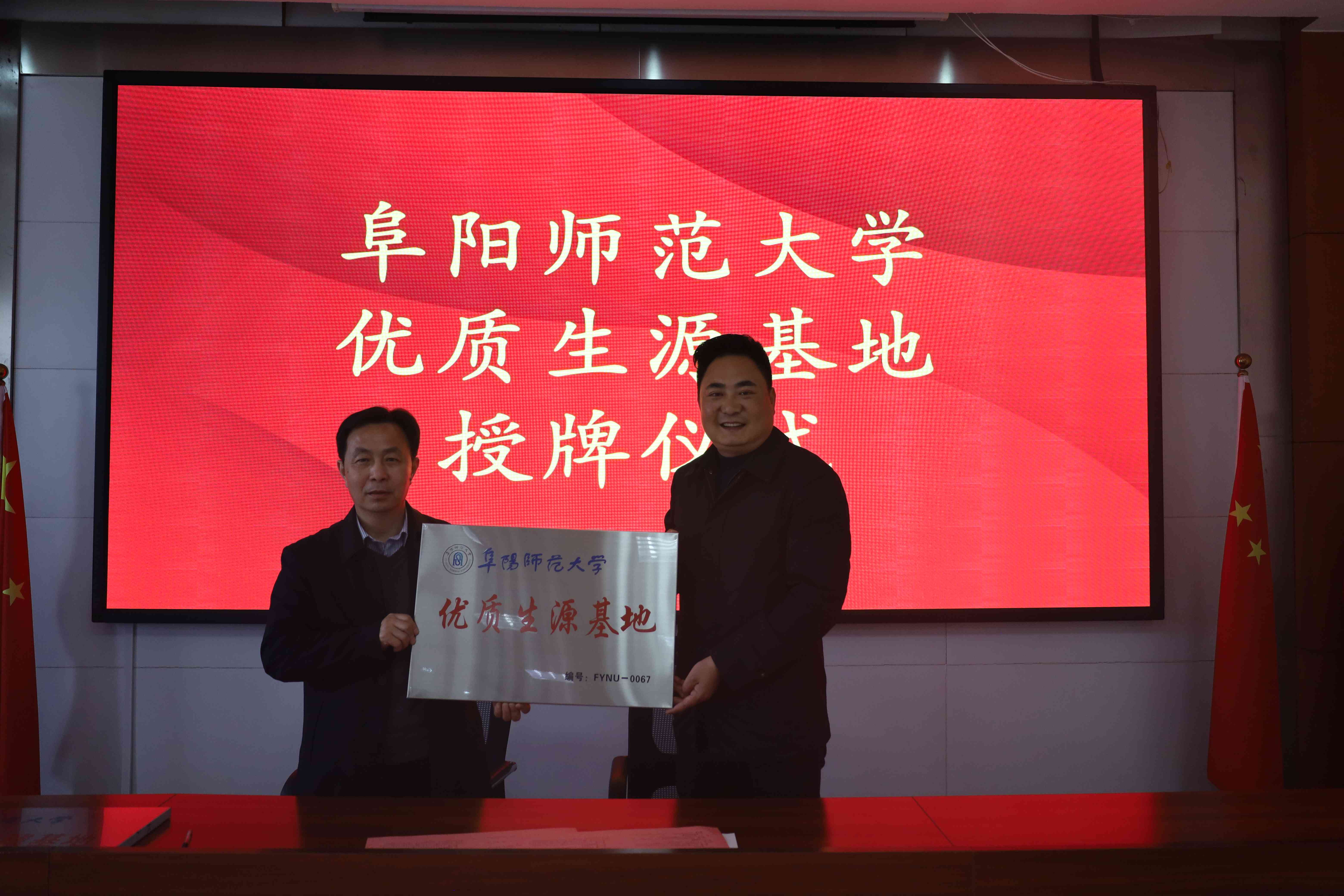 会后,方处长代表阜阳师范大学和合肥新康中学签订合作协议,并授予“优质生源基地”和“就业创业实践基地”两块牌匾。