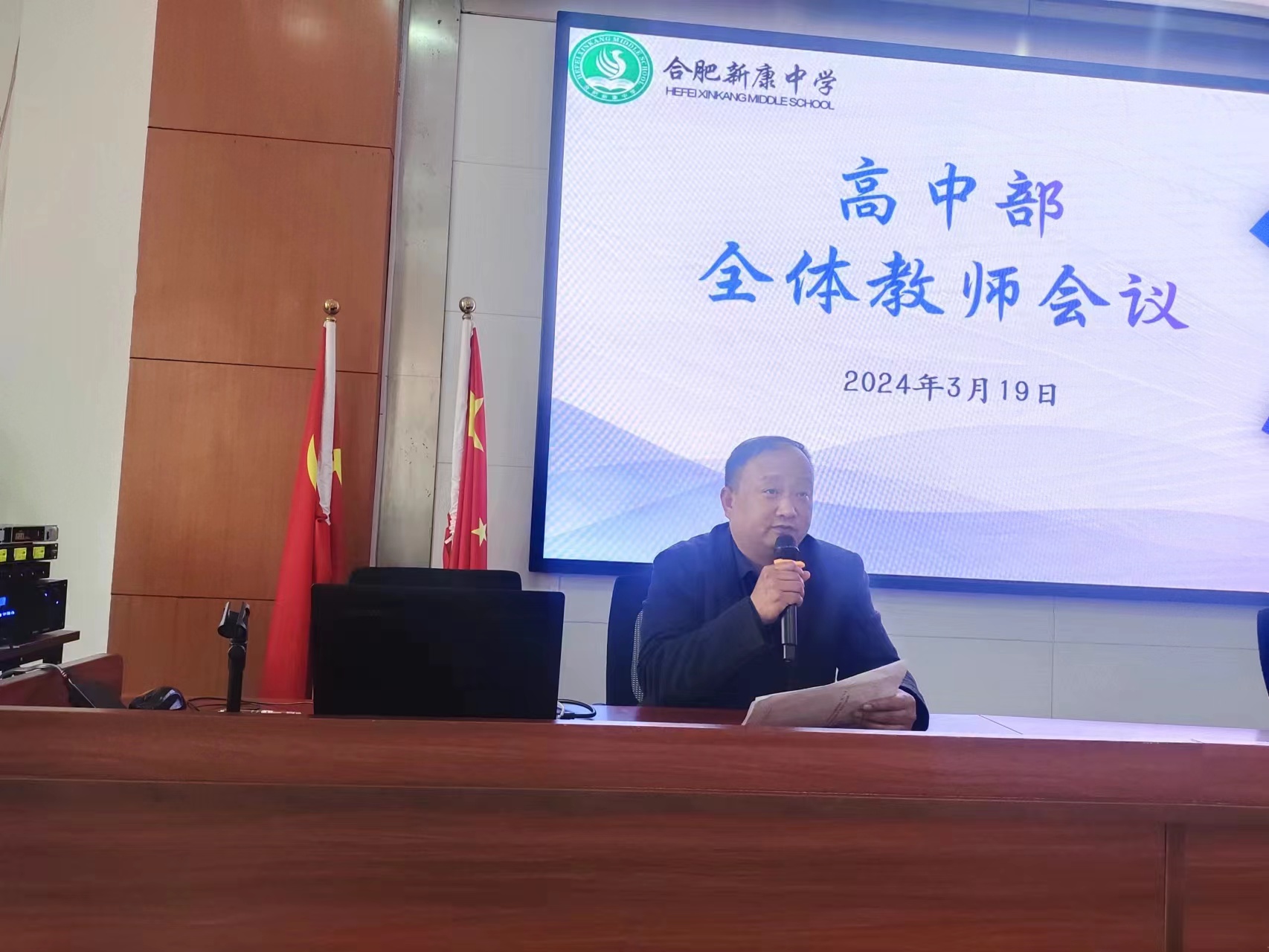 为了更好地开展教育教学工作,落实师德师风常态化管理,强化学生的常规管理以及心理健康管理,并推动学校教学教研、德育工作的深入开展,高中部于2024年3月19日下午召开全体教师会议,总结上一阶段工作,布置下一阶段的工作任务。