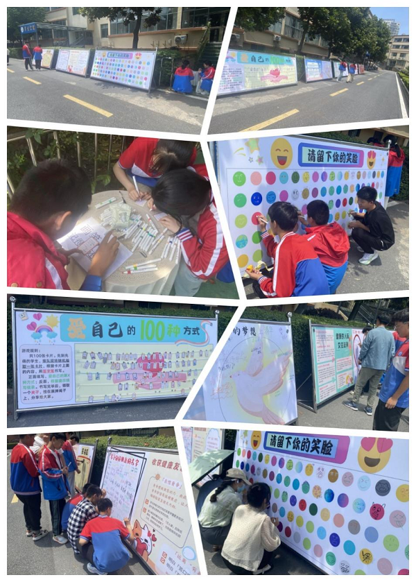 4.活动流程:在心理辅导中心入口处,设立活动点位,设置相关互动主题。如“爱自己的100种方式”、“请留下你的笑脸”“写下你的梦想”“写下你好朋友的名字”“‘心’知识:如何有效学习:写下你的想法”等等。