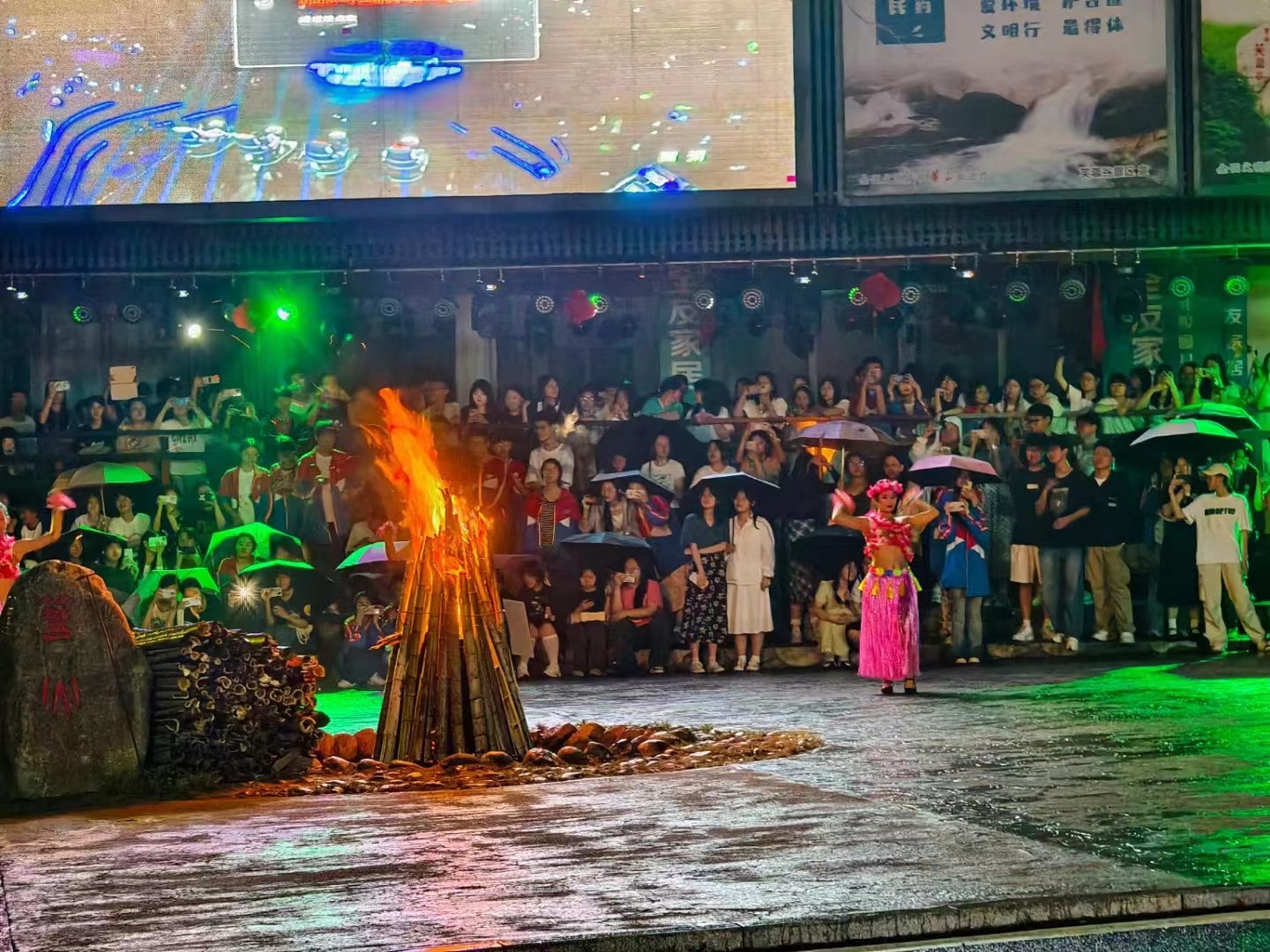 为了增强集体荣誉感,增强班级凝聚力,晚上安排了团建活动。夜幕降临,篝火燃起,虽然小雨淅沥,但同学们的热情不减。大家一起围绕篝火载歌载舞,熊熊篝火点燃着夜幕下青春的激情与活力,同学们在欢乐的海洋里唱着、跳着,尽情享受着研学带给他们的欢乐。