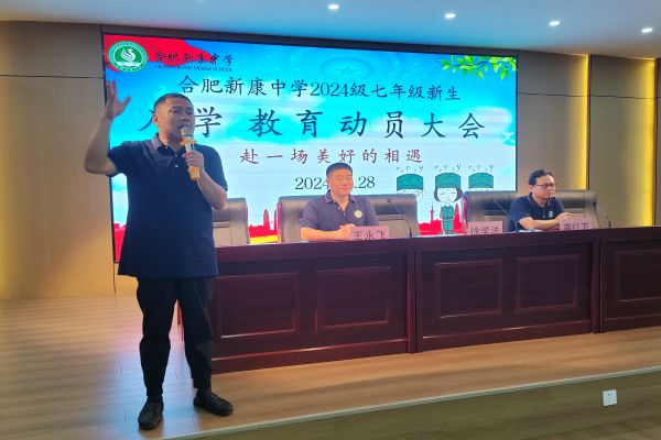 徐校长最后做动员讲话,他从中考成绩、教师团队、环境设施、校园活动几个方面向同学们介绍了美丽的新康。他告诉同学们进入初中阶段要学会自觉学习、主动学习、勤奋学习,做学习的主人;要掌握基本的生活的技能和本领,成为生活上的小能手;要养成诚实、善良、正直、高尚的品格,做一个堂堂正正的人。徐校长的讲话体现了学校对同学们的培养方向,相信同学们在学校的用心培育下定能茁壮成长,不断进步!
