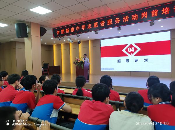 2024年9月9日,合肥新康中学高中部为提升志愿者服务质量,联合合肥南站面向高一全体新生组织了志愿者服务活动岗前培训。此次培训旨在让志愿者们更好地了解志愿服务的意义和价值,掌握必要的服务技能和知识。合肥轨道交通有限公司地铁南站培训师计晓丽细致介绍了志愿服务的标准以及服务要求,以及如何与服务对象进行有效的沟通和交流,如何应对各种突发情况,以及如何确保服务的安全和质量。志愿者们认真聆听,积极互动,纷纷表示受益匪浅。