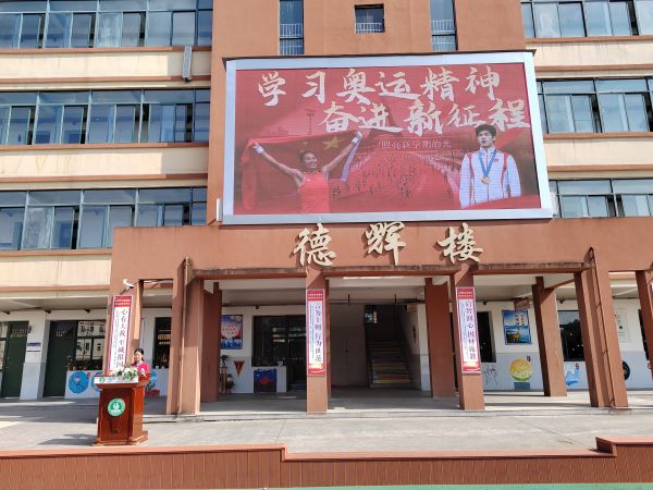 而在刚过去的巴黎奥运赛场上,五星红旗升起的时刻是最让我们骄傲和自豪的时刻。2024年9月9日,我校举行了“学习奥运精神,奋进新征程”主题升旗仪式,旨在鼓舞同学们在新学期以奥运精神为指引,勇往直前,不断超越自我!活动由八(6)班的吴嘉滢同学主持。
