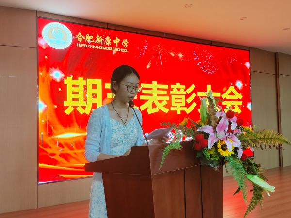“金风摇落前林果,丹桂飘香满校园。”为表彰先进、激励后生,进一步调动全体学生的学习积极性和主动性,营造良好学习氛围,在9月10日这个特殊的日子里,合肥新康中学初中部在报告厅召开上学期期末综合素质展示表彰大会。