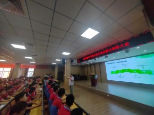 龚校长对八、九年级的学生两次成绩情况进行详细的的数据对比表扬了优秀生和进步生,最后对学生们接下来的学习生活提出更好的要求与期待。