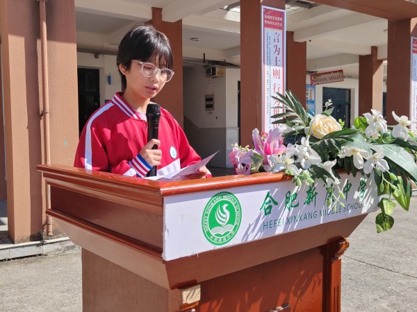 培养学生良好的行为习惯,能帮助学生塑造健康的人格,能促进学生的健康成长,能让学生受益终身。为此,新康中学初中部于9月23日上午,举行了“一规一矩有章法,一言一行好习惯”主题升旗仪式。活动由七(2)班程雨晨同学主持。