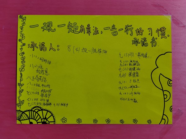 学生行为习惯养成教育,是学校德育工作的重要组成部分,我校对学生行为习惯的培养是以“六不六静”为主要内容。在主持人程雨晨同学的号召和带领下,同学们以“六不六静”的内容为誓言,表达了践行“六不六静”的坚定决心。同时,各班级还指派班长为代表,庄严地在承诺牌上签字。