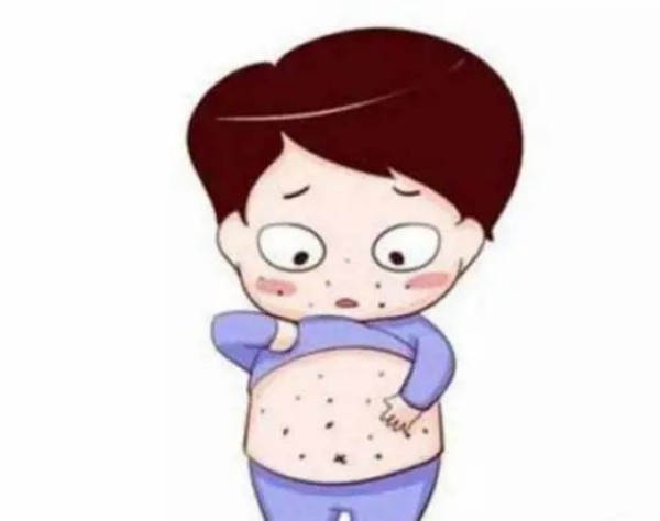 ⭐主要症状:水痘病毒感染人体后,经过大约2周的潜伏期,患者可出现头痛、全身不适、发热、食欲下降等前期症状,继而出现有特征性的红色斑疹,后变为丘疹,常伴有瘙痒,1-2天后开始干枯结痂,持续一周左右痂皮脱落。皮疹躯干部最多,头面部次之,四肢较少,手掌、足底更少。